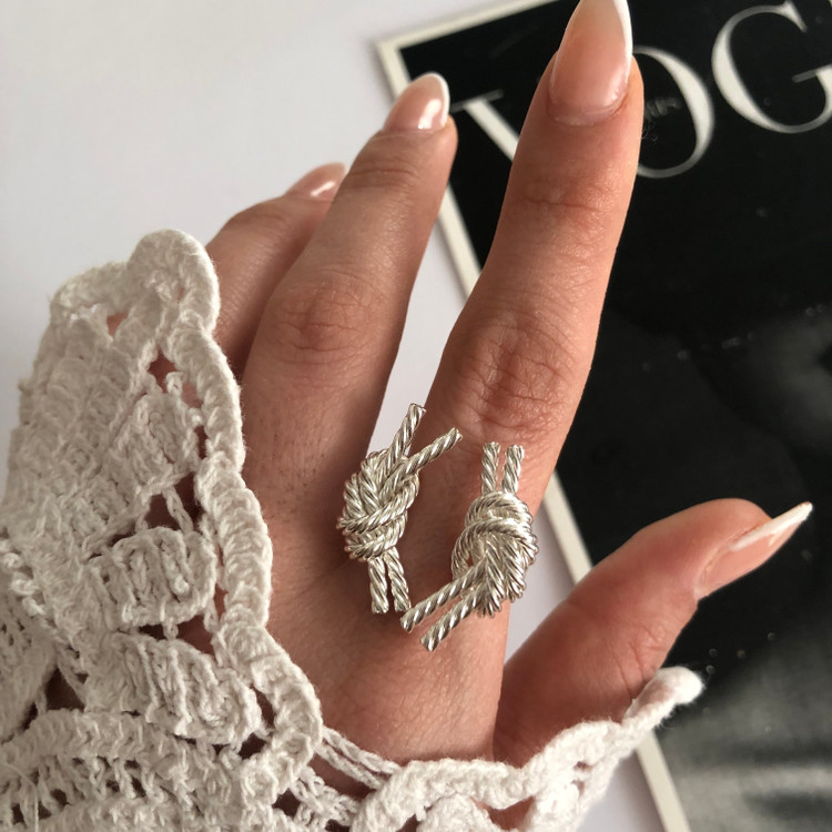 انگشتر زنانه و دخترانه مینیمال ابکاری نقره طرح گره فری سایز( قابل تنظیم سایز شدن )کیفیت عالی مناسب مهمانی و مجالس