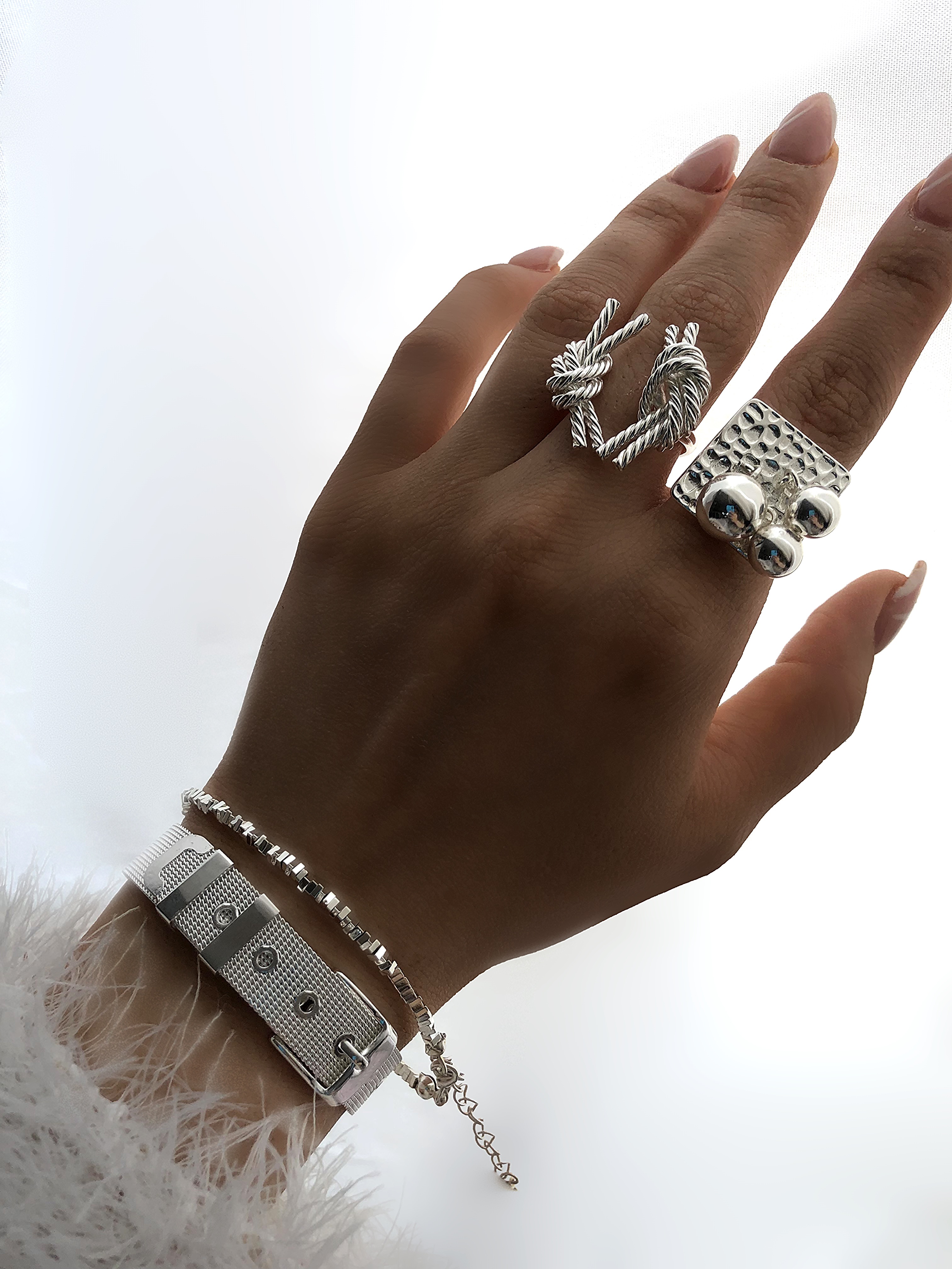 انگشتر زنانه و دخترانه مینیمال ابکاری نقره طرح گره فری سایز( قابل تنظیم سایز شدن )کیفیت عالی مناسب مهمانی و مجالس