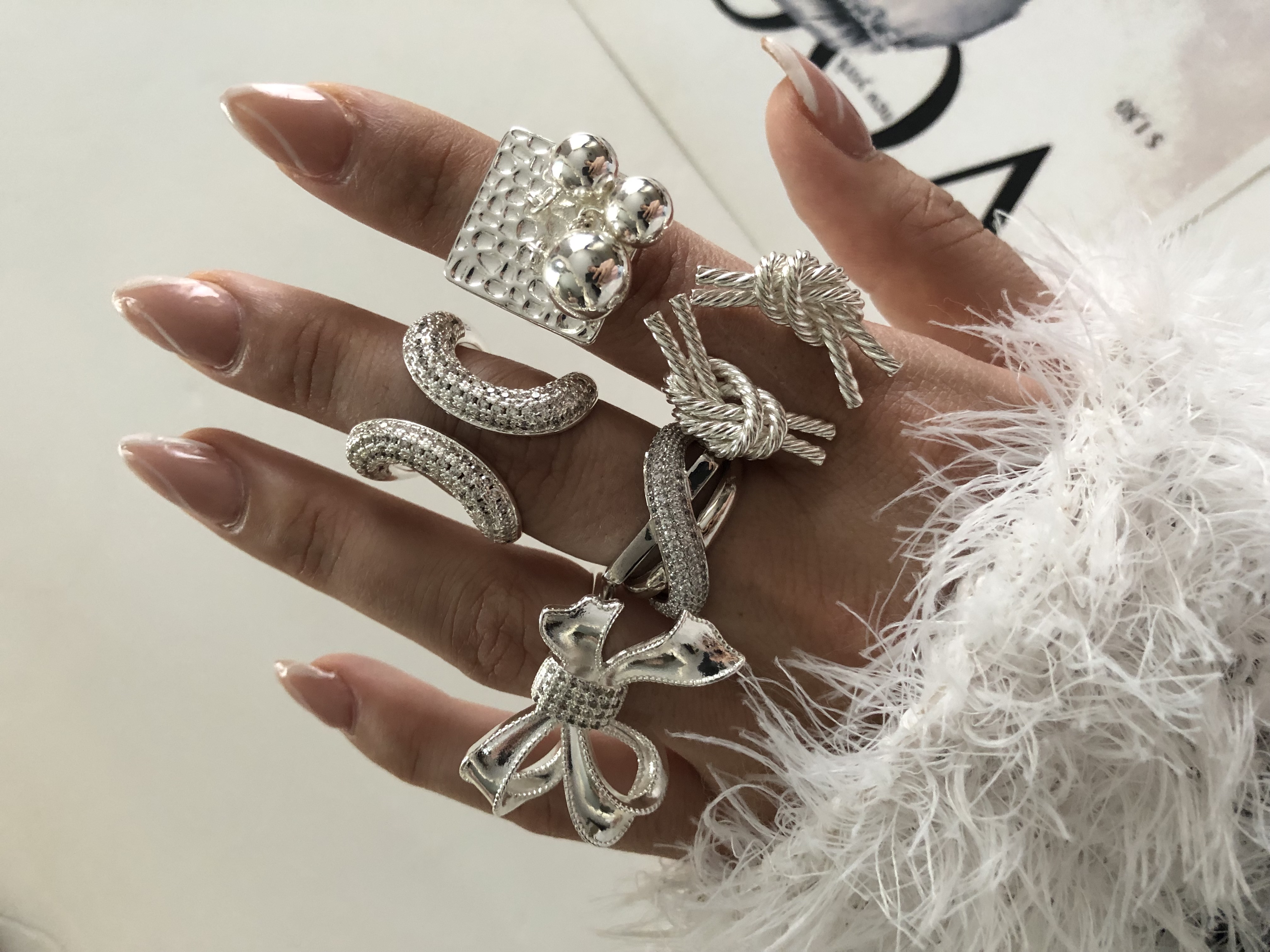 انگشترزنانه طرح گوی متحرک ابکاری نقره