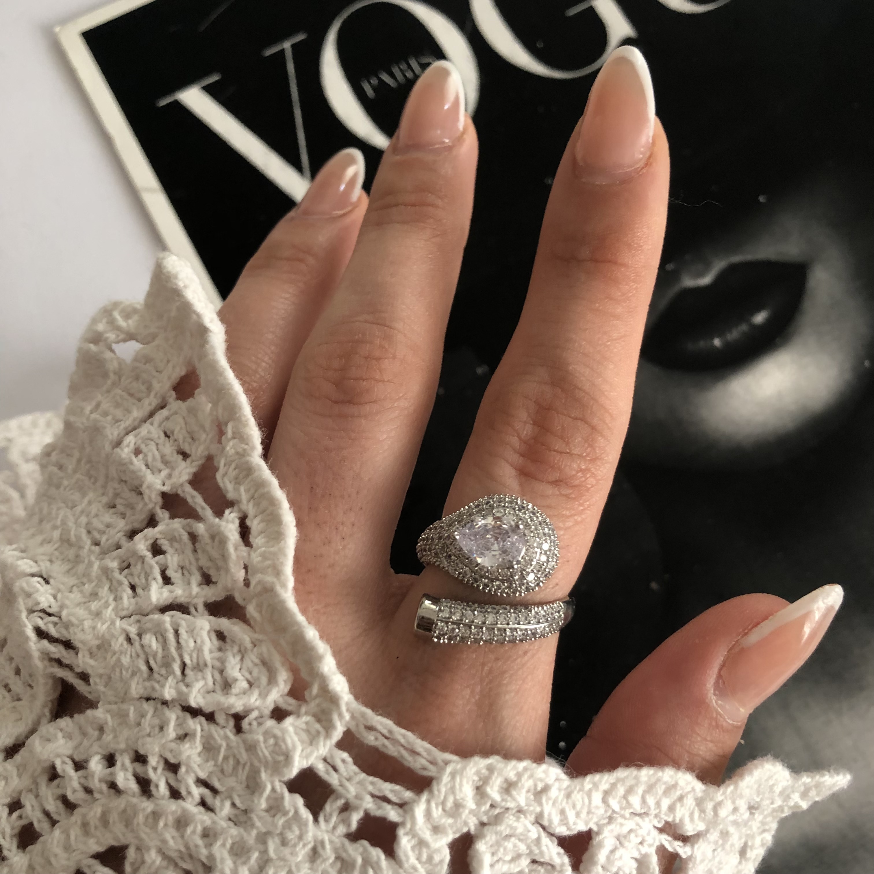 انگشتر جواهری فول نگین مشابه طلا ، بدون ریزش نگین کیفیت ابکاری بالا نگینای درخشان مناسب برای هرسایز انگشت فری سایز مناسب مهمانی و مجالس
