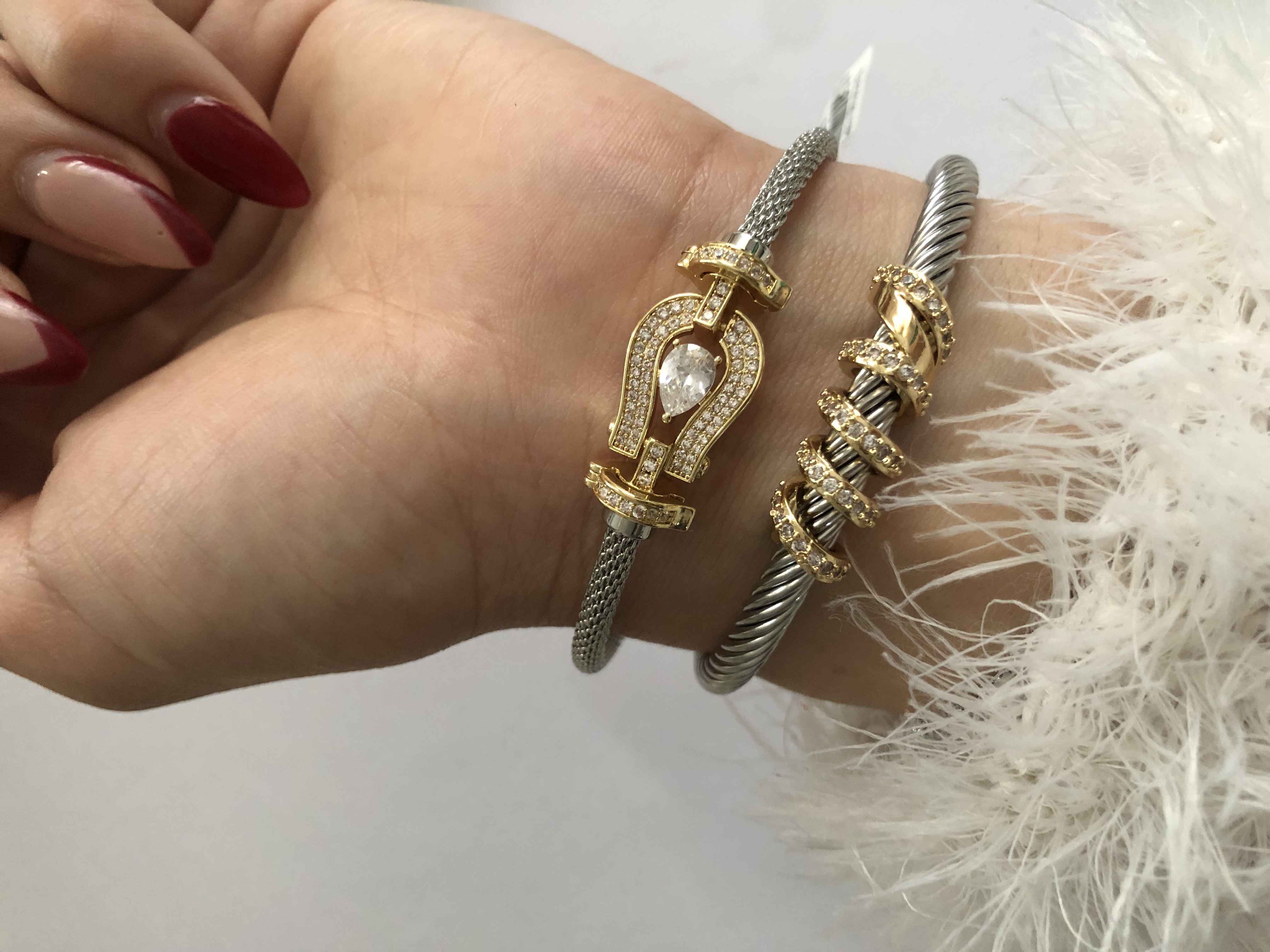 بنگل ( دستبند ) طرح فرد نگیندار کیفیت اصلی ابکاری فوق العاده بالا مناسب مهمانی ومجالس مشابه نمونه اصلی طلا