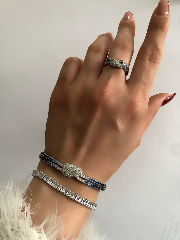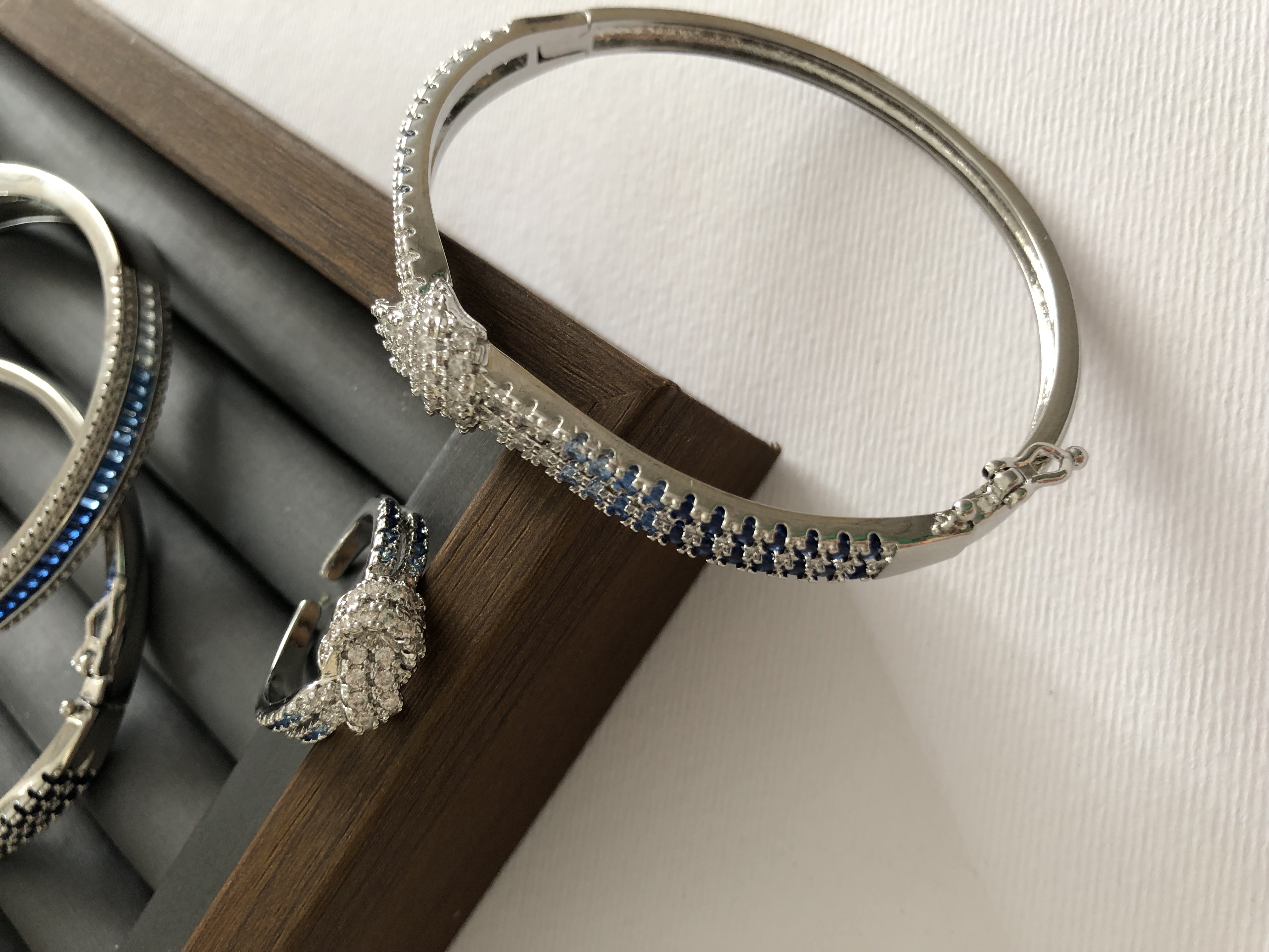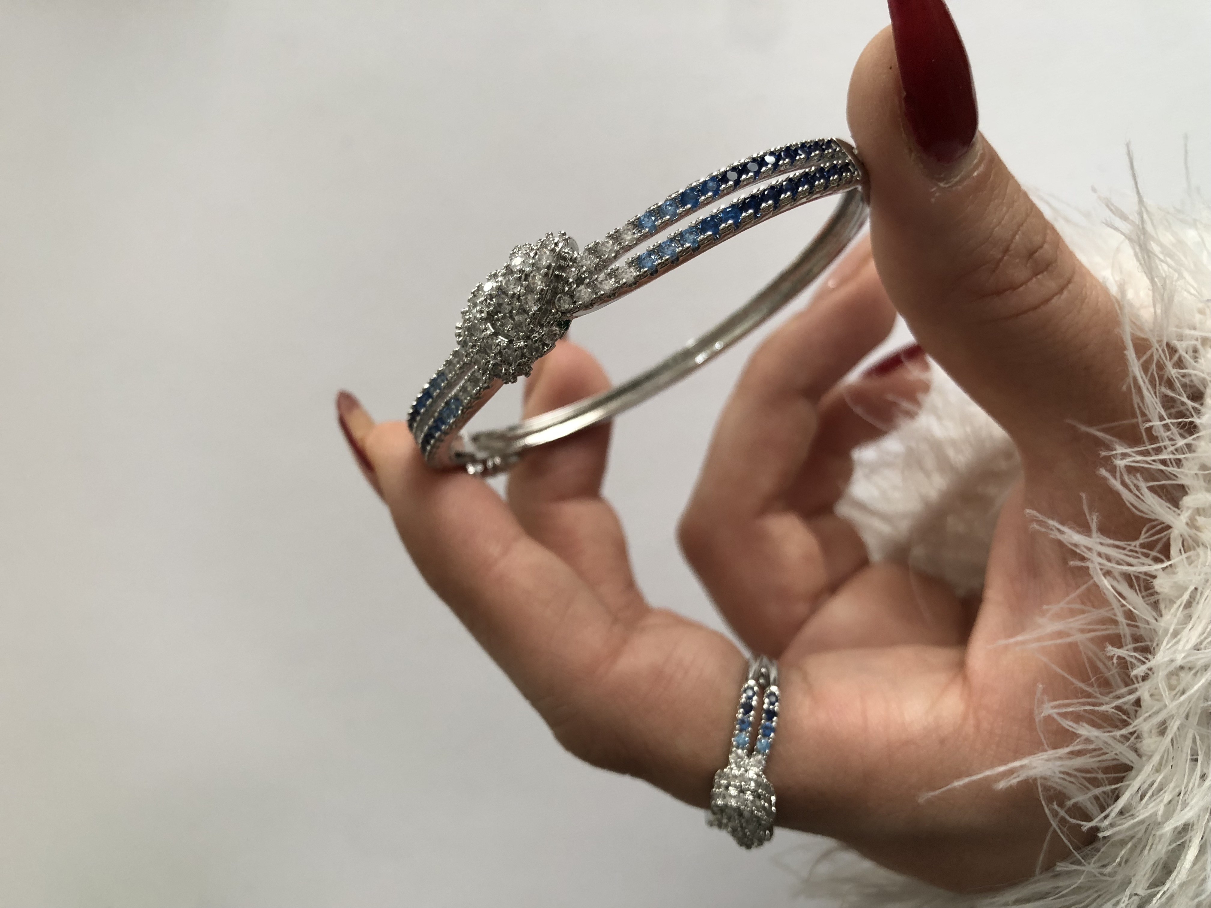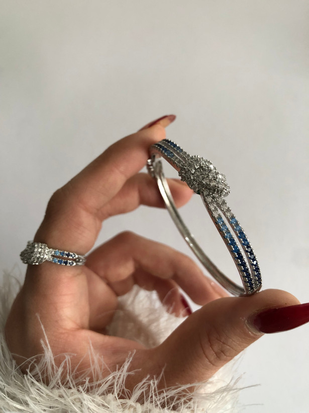 ست بنگل و انگشتر جواهری گره سرمه ای