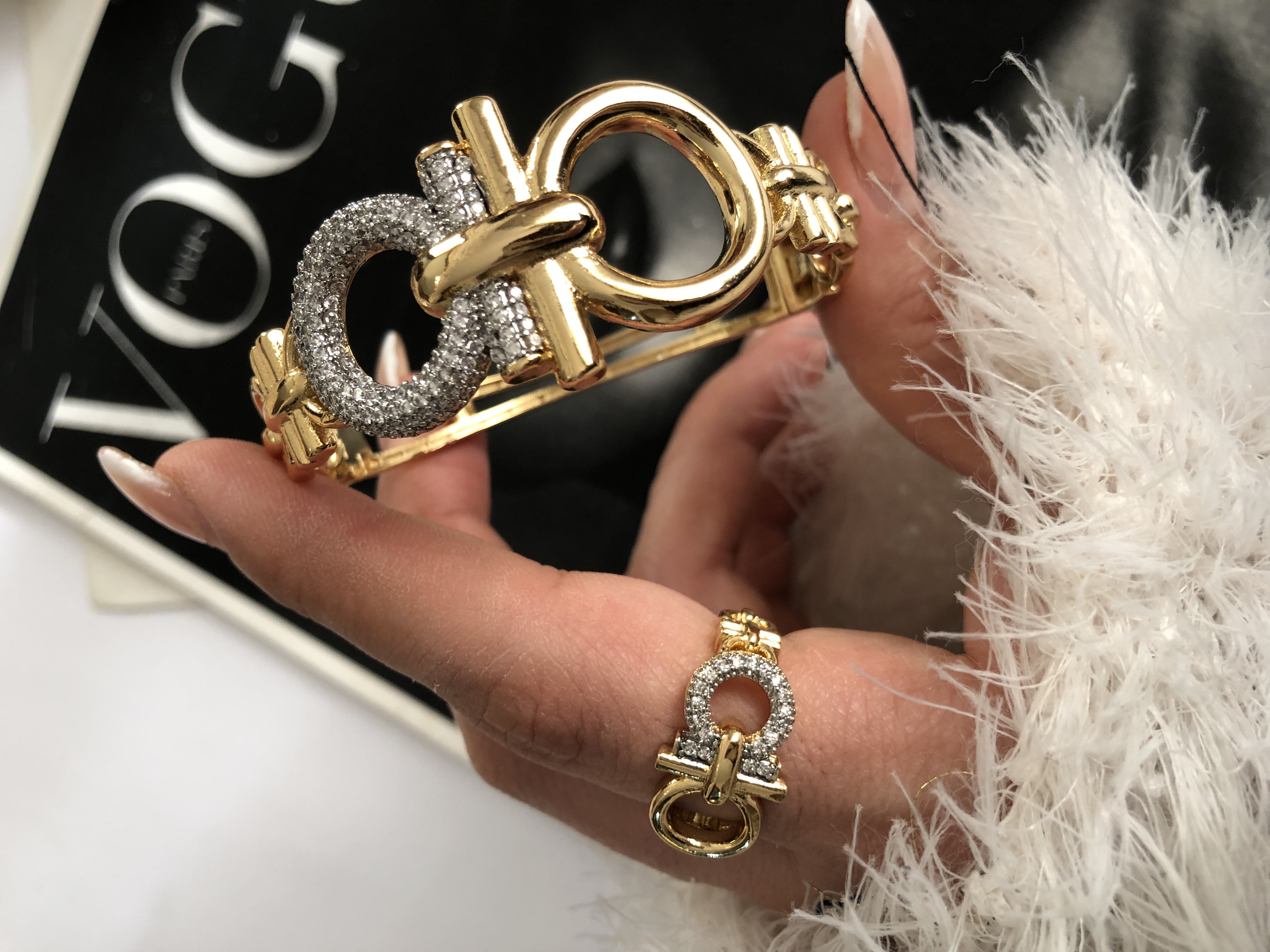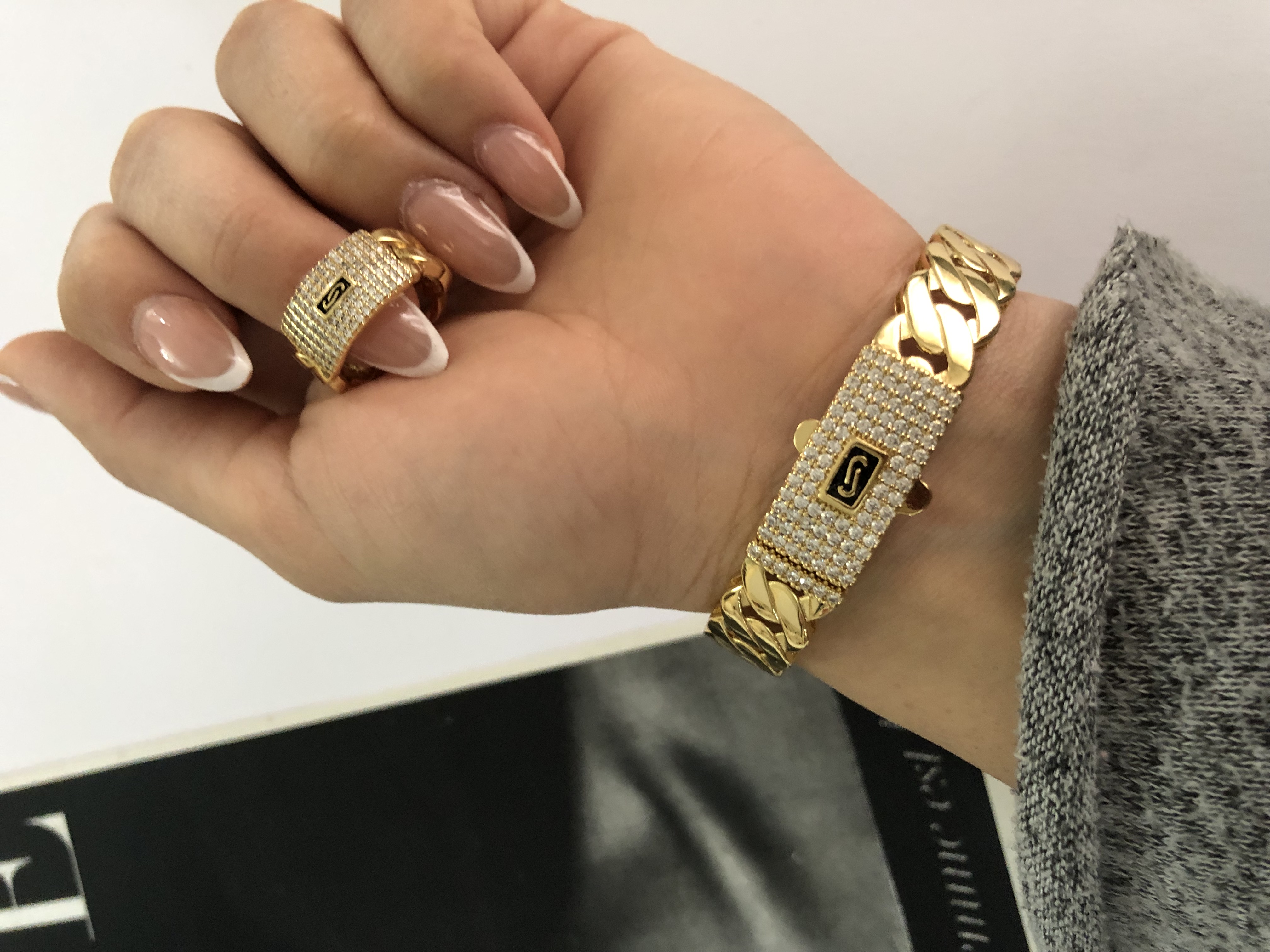 ست بنگل و انگشتر جواهری پنتر طرح طلا